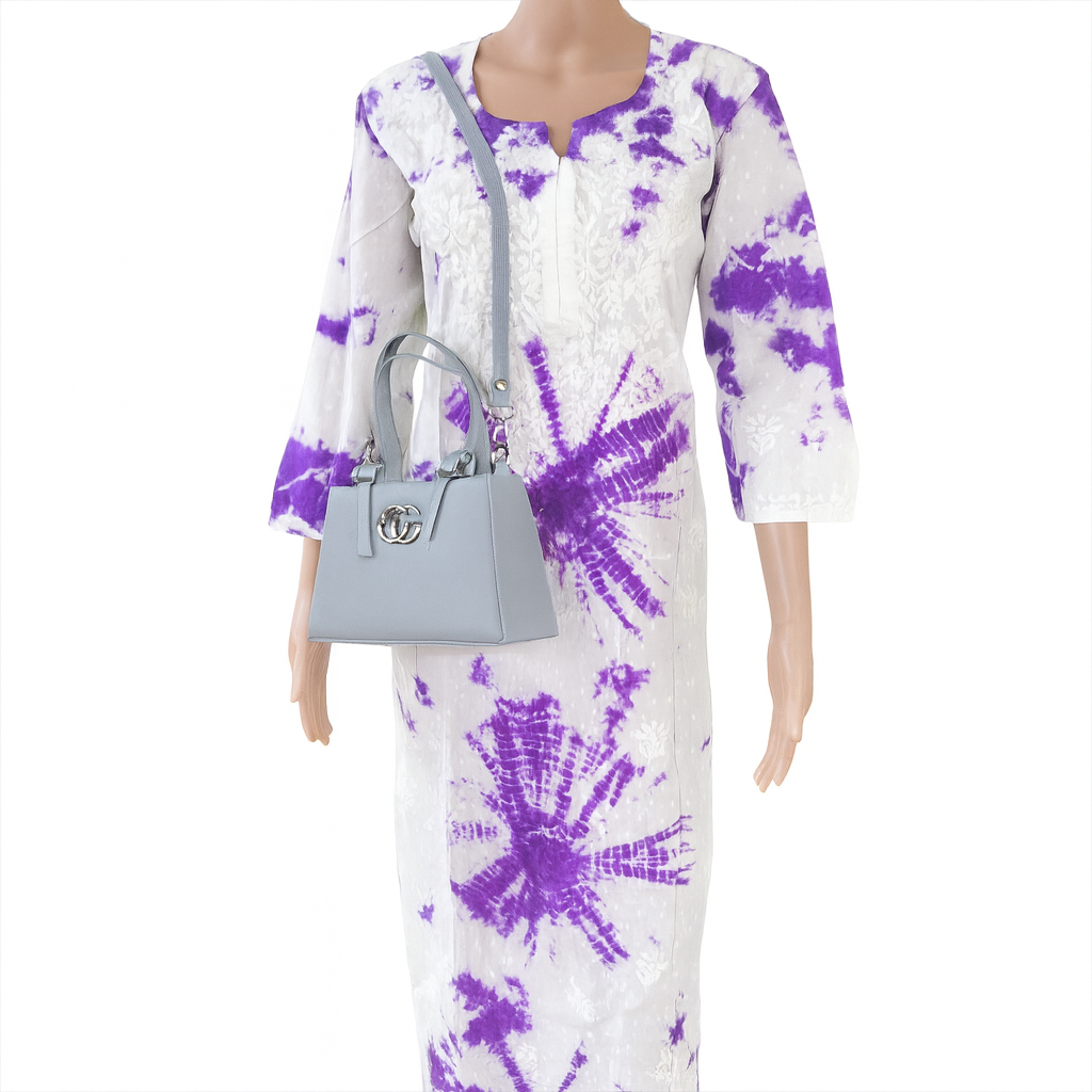 This stylish grey faux leather handbag combines sophistication with everyday functionality. Designed with a structured silhouette, dual handles, and a detachable strap, it easily transitions from office to casual outings. The metallic logo detail adds a touch of luxury without the high price tag. Get the elegance of leather at a fraction of the cost.